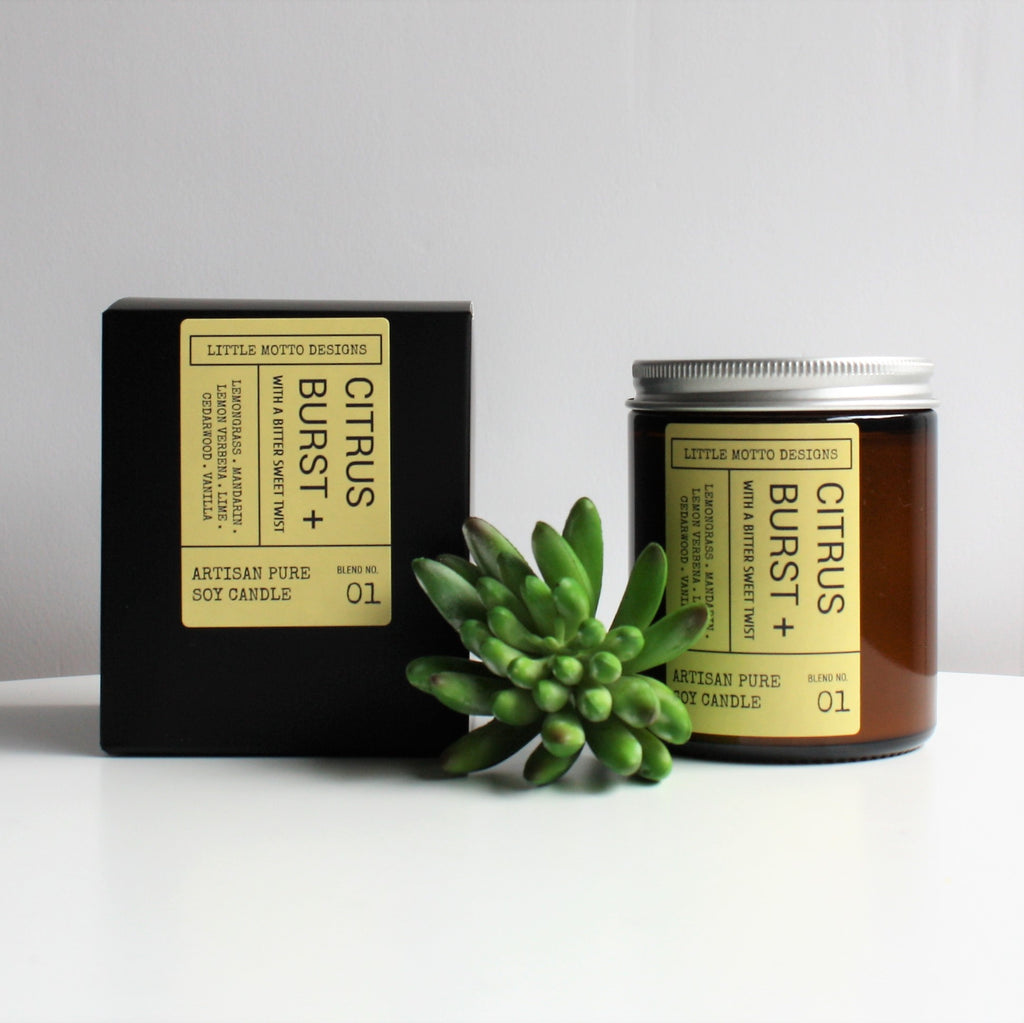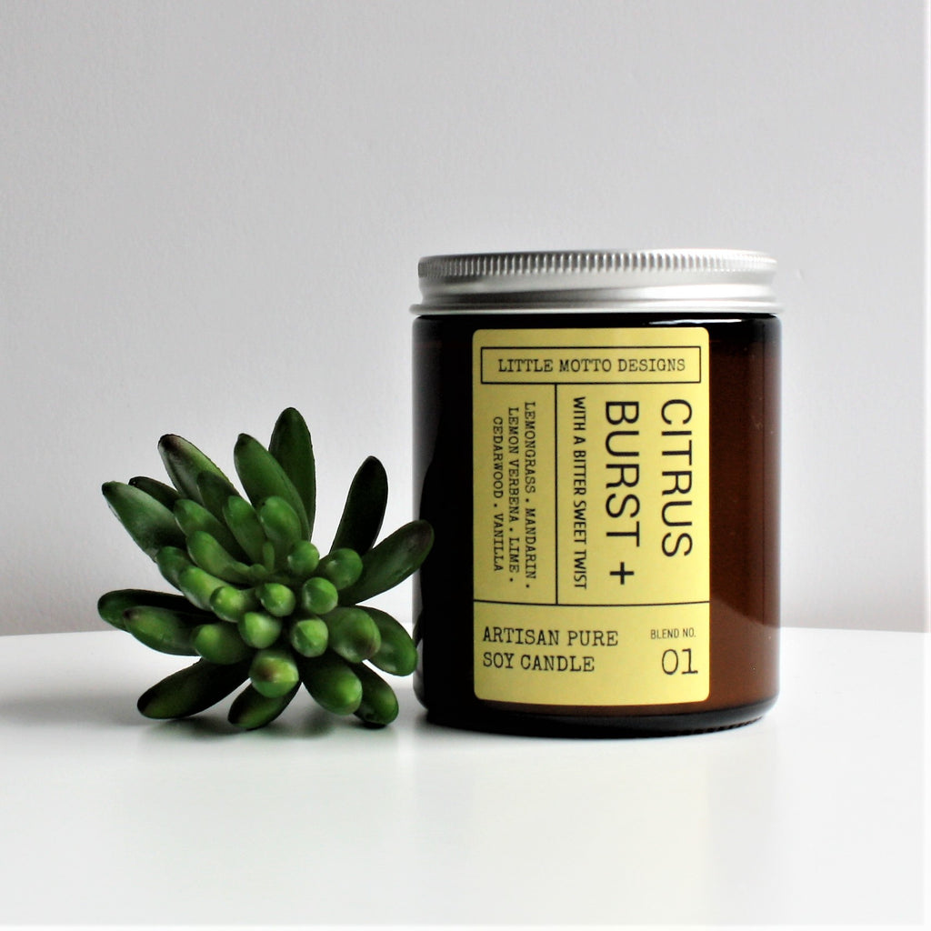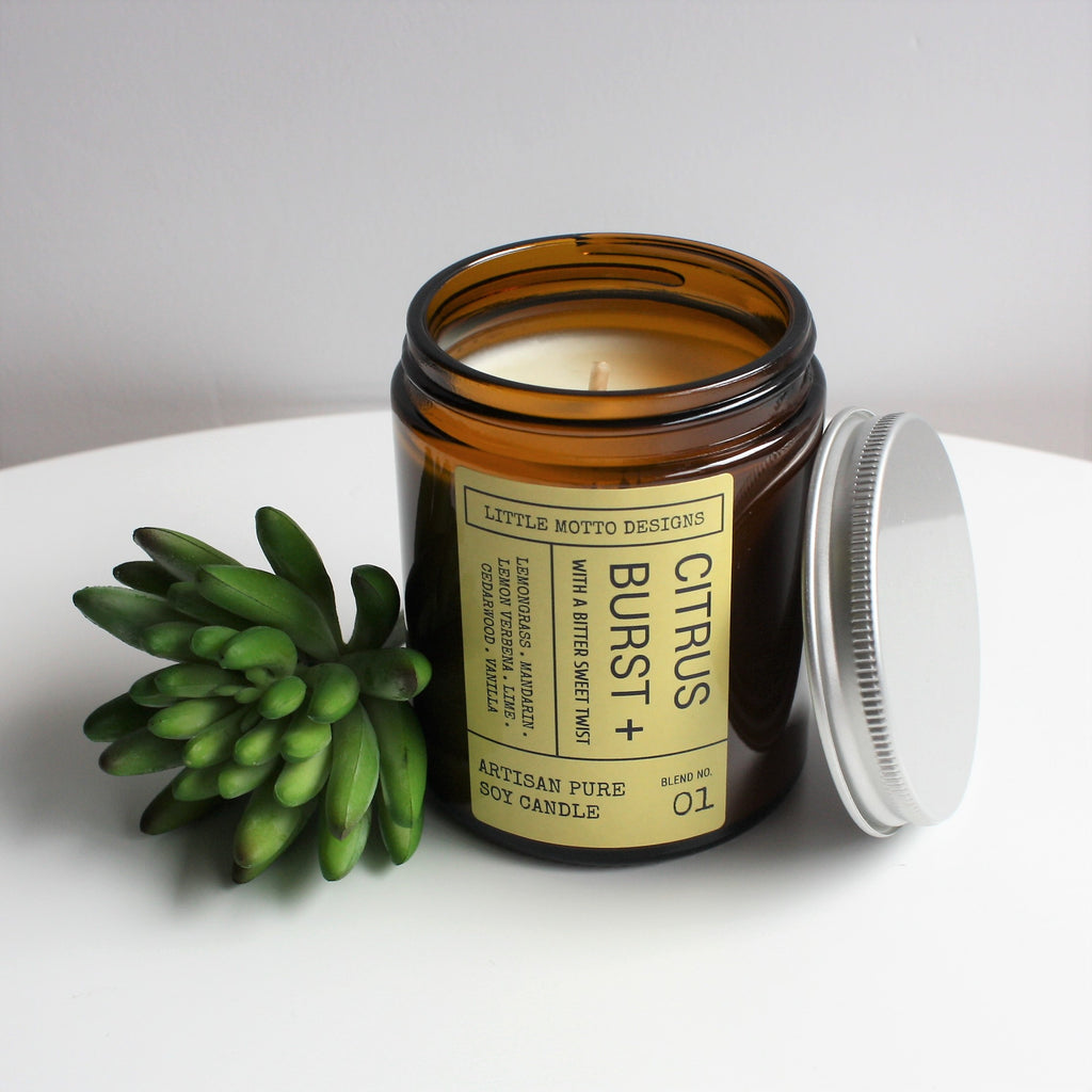 Artisan Soy Candle | CITRUS BURST | Amber Glass Jar | Everyday Brights | Fragranced Candle