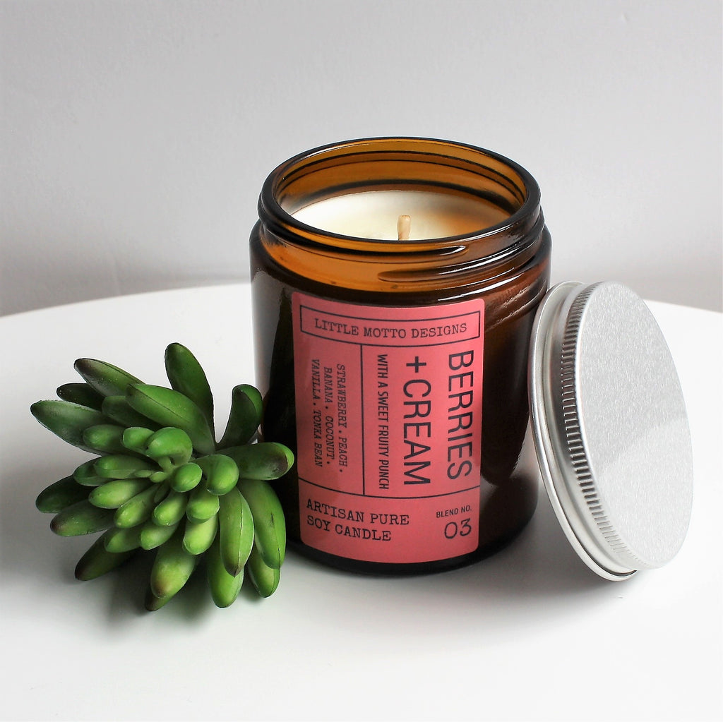Artisan Soy Candle | BERRIES & CREAM | Amber Glass Jar | Everyday Brights | Fragranced Candle