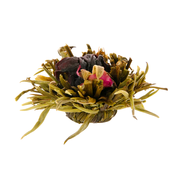 Tea Tonic's artisan crafted Tea Balls are made of the highest grade special green tea of fresh spring crops and natural herb flowers. This delicious honey peach flavour with a single rose display and a slight blush is Tea Tonic's favourite.