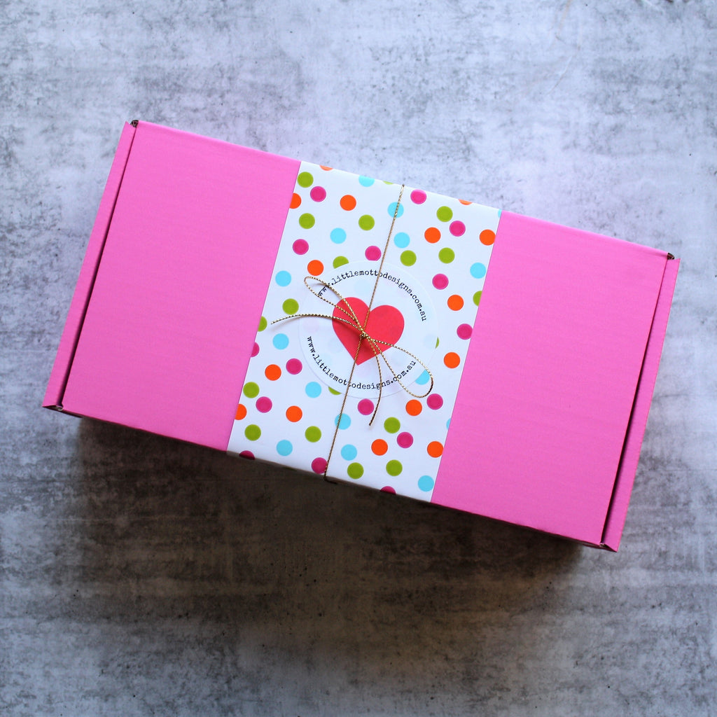 We also create Custom Hampers and Corporate Gifts. All candles are hand poured and designed by us. Please email us at info@littlemottodesigns.com.au to discuss your ideas and get a quote.
