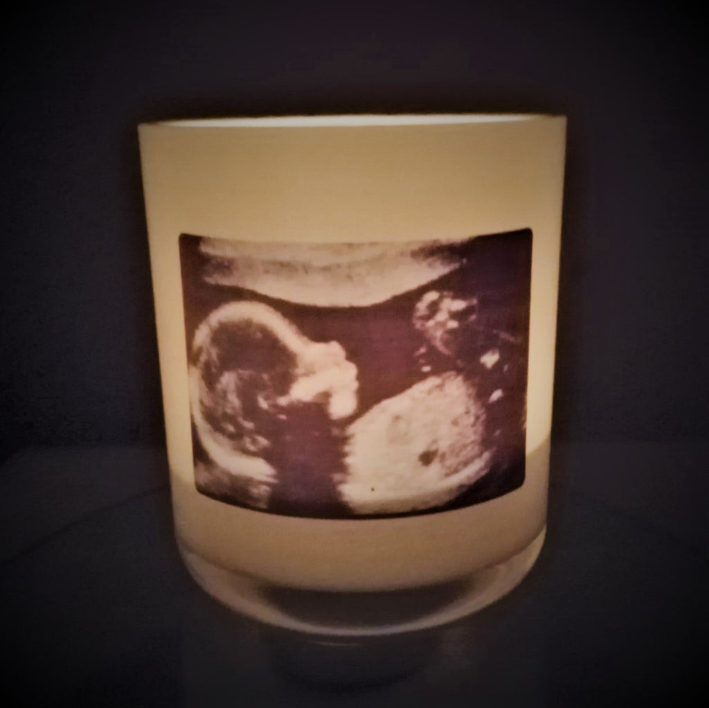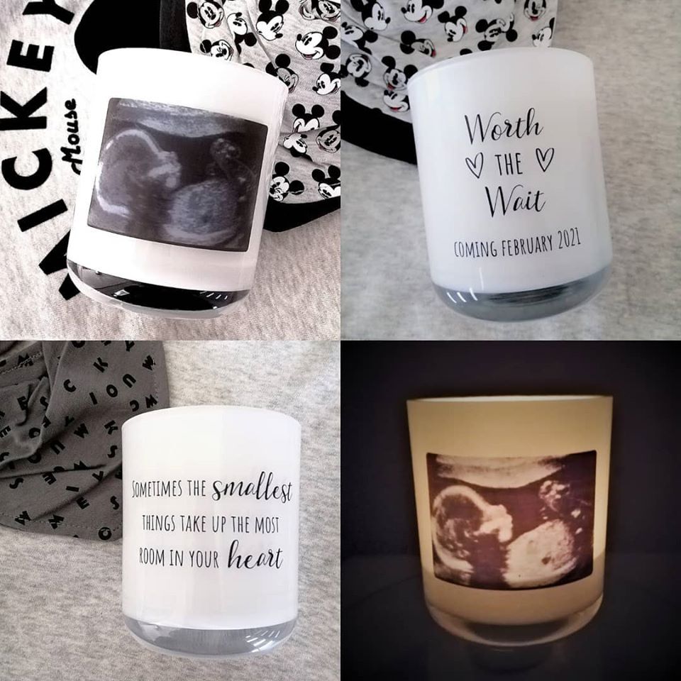 A truly unique gift or a great way to announce your pregnancy... send us a baby scan photo at info@littlemottodesigns.com.au and we will apply it to a candle. You can even add a written message to the other side of the candle for no extra cost.